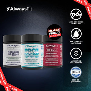 O Kit Pro3Magnésio + Fit S36 + Picolinato de Cromo combina três fórmulas exclusivas da Always Fit:
